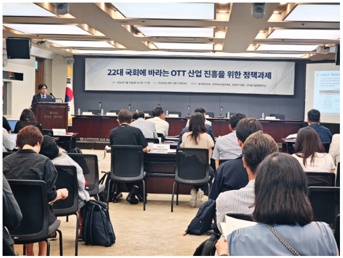 적자 보는 국내 OTT… 플랫폼 합병과 글로벌화 절실국내 OTT(미디어 콘텐츠 제공 서비스) 산업이 적자에 시달리고 있습니다. 이를 극복하고 산업을 진흥시키기 위해서는 플랫폼의 글로벌화와 규모의 경제 실현이 필요하다는 주장이 제기되었습니다. 한국프레스센터에서 열린 'OTT 산업 진흥을 위한 정책과제' 세미나에서 노창희 디지털산업정책연구소 소장은 국내 OTT 산업의 현황과 문제점을 짚으며 이러한 의견을 제시했습니다.국내 OTT 산업의 성장률 둔화노 소장은 최근 OTT 산업 성장률이 둔화되고 있음을 강조했습니다. 코로나19 팬데믹 시기인 2021년 14.90%였던 OTT 서비스 가입자수 증가율은 2022년 8.90%, 2023년 5.20%, 올해 4.30%로 줄었고, 내년에는 3.60%, 2026년에는 2...