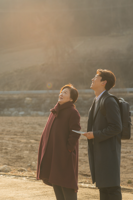 두 번째 스틸은 죽은 지 3년이 된 어느 날, 세상에서 가장 특별한 휴가를 받고 지상으로 내려온 엄마 '복자'(김해숙)와 그녀의 휴가를 돕는 유쾌한 '가이드'(강기영)가 함께 하늘을 바라보는 모습을 담고 있어 판타지 설정이 녹아 있는 이야기에 궁금증을 더합니다.