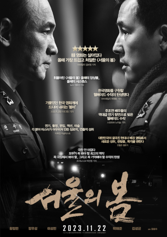 한국영화계를 뒤흔들 '서울의 봄'이 언론 매체의 호평이 담긴 리뷰 포스터를 공개했습니다. 1979년 12월 12일 서울에서 벌어진 신군부 반란을 소재로 삼은 이 작품은 뜨거운 호평을 받아 만장일치 호평 세례를 받고 있습니다.